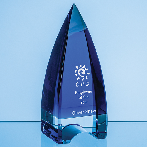 18cm Cobalt Blue & Clear Optical Crystal Pinnacle Award