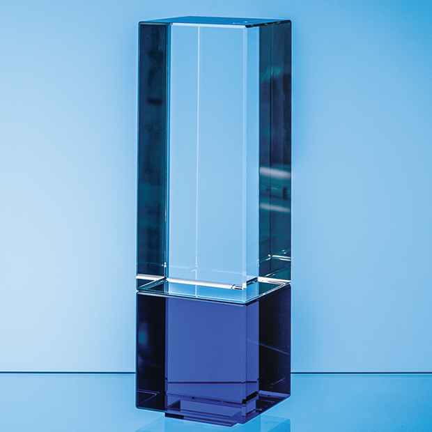 22cm Clear & Cobalt Blue Optical Crystal Berkley Column Award