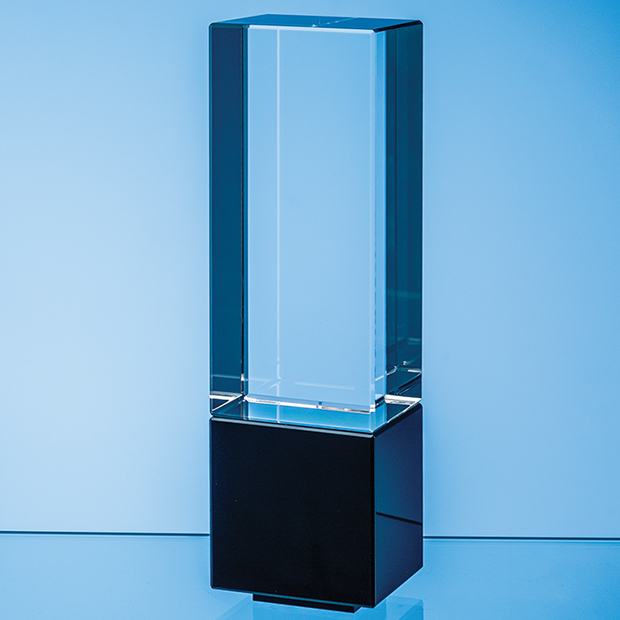 The 22cm Clear & Onyx Black Optical Crystal Berkley Column Award commands attention with its elegant stature and captivating colour interplay. Crafted from the finest quality optical crystal, it serves as a canvas for light to refract and reflect, creating a dazzling symphony of brilliance. It can be decorated with a variety of different techniques including 2D and 3D subsurface engraving, sandblast engraving and full colour UV printing to your specific requirements. The award is supplied in a foam lined gift box.