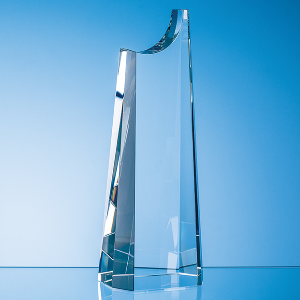The impressive 28cm Optical Crystal Summit Award commands attention with its grandeur and grace. Meticulously hand crafted from the finest quality optical crystal the award captures the essence of success and embodies accomplishment. There is a generous engraving area that can be personalised with any crest, logo or wording to create an award that is sure to be treasured by the recipient. The award is supplied in a foam lined gift box.