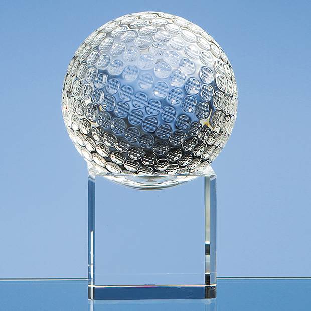 The Golf Ball on clear bases are very effective and stylish, the ball spins freely on the base having been hand crafted out of perfectly clear optical crystal. They are available in 4 sizes and are ideal awards or prizes that can be personalised on the base with any club crest, logo or wording to create a gift that is sure to take pride of place when put on display. They are supplied in a black foam lined presentation box.