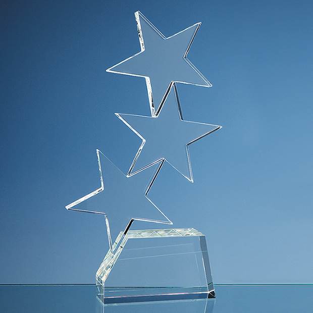 The Rising Star series of awards are ideal recognition, achievement or incentive gift. They are hand crafted out of perfectly clear optical crystal and are available in 3 sizes making them ideal for 1st, 2nd and 3rd place awards. They can be personalised on the base with any crest, logo or wording to create an award that is sure to take pride of place when put on display at home or at work. They are supplied in a black foam lined presentation box.