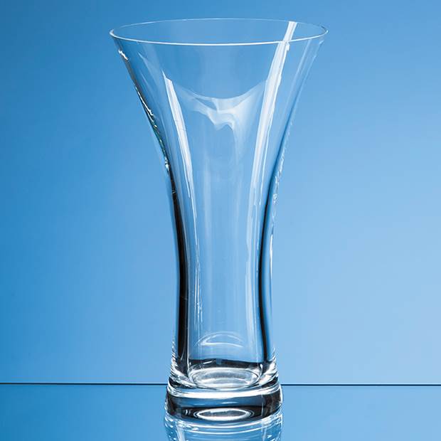 Clean, simple lines and an attractive tulip shape this 25cm Neptune crystalite presentation vase can be used for so many different occasions whether they be personal or business. There is an engraving area above the base to add a message, greeting, logo or crest. As an alternative you could choose a slightly smaller 18cm version SL522 or 21.5cm SL523. The vase is supplied in a blue gift box.