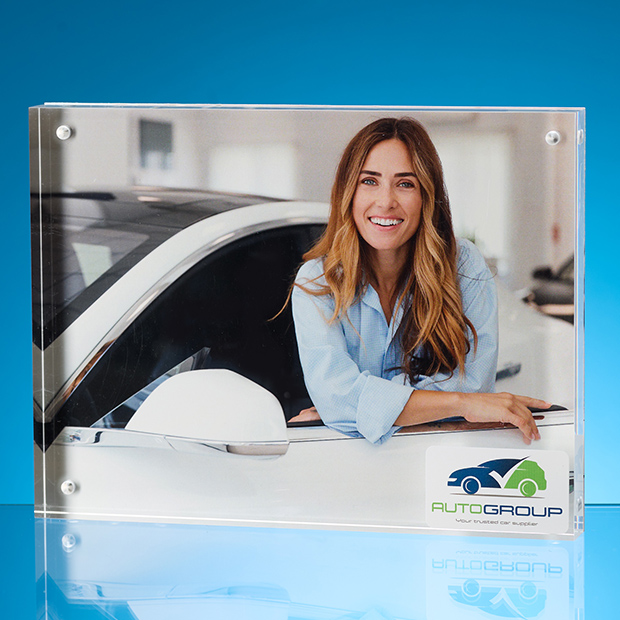 Showcase your photos in style with the ClearVue Premium Acrylic Photo Frame. The frame features a unique high-gloss hand-polished edge and a sleek brushed stainless steel back. For added personalisation, the front of the frame can be full colour printed with a logo, making it ideal for corporate branding, gift item or a great way to say Thank you. Please note the photo is not supplied with the frame.
