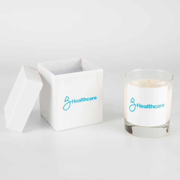 The 240g clear glass scented candle is a beautiful gift that can be personalised with a full colour logo, photograph or wording that are digitally printed onto a label to create a gift that is sure to take pride of place when put on display at home or at work. The candle is available in a choice of 18 different scents and it is supplied in a square lidded gift box that can also be decorated with a digitally printed label. The candle can also be supplied unscented.
