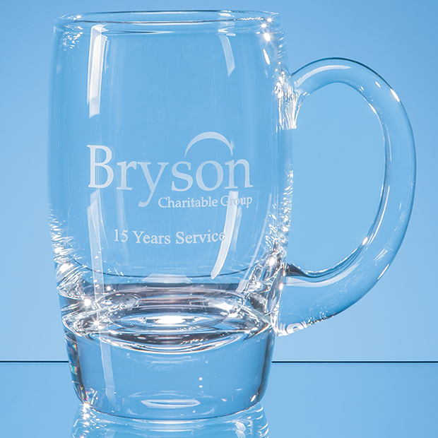 The oval tankard follows a classic design where the thickness of the glass and the base help to insulate the beer and keep it cool. This beer tankard can be decorated with sandblast engraving or colour decals making it a great choice for both corporate and personalised gifts.