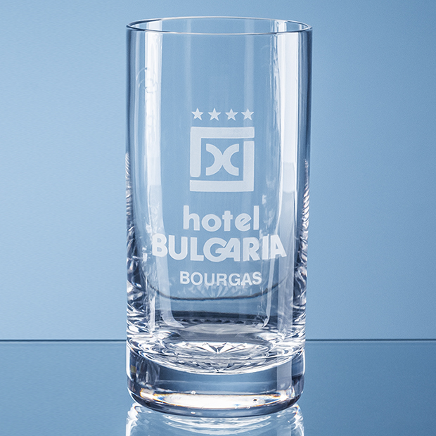 The 400ml Grosvenor lead crystal high ball tumbler is beautiful in its own right, not only does it look great, it feels great too. The high ball is hand made and features a star cut base. Add any crest, logo or wording to create a unique gift that will be treasured by the recipient. The high ball is part of a suite of Grosvenor tableware that are perfect for home or corporate functions. Available as an option is a deluxe satin lined presentation box.